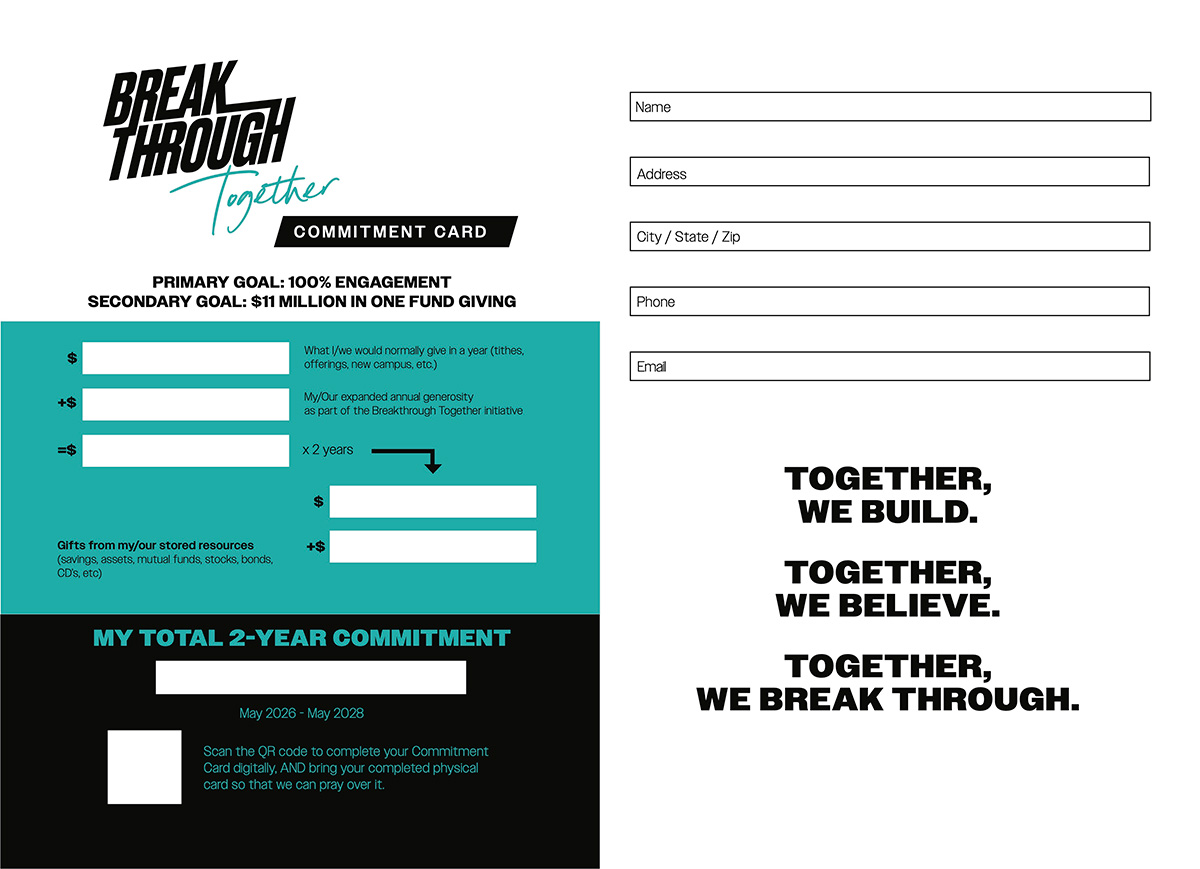 Every gift given during this two-year journey supports the ongoing ministry of Raleigh North while also helping move the Breakthrough Together vision forward.