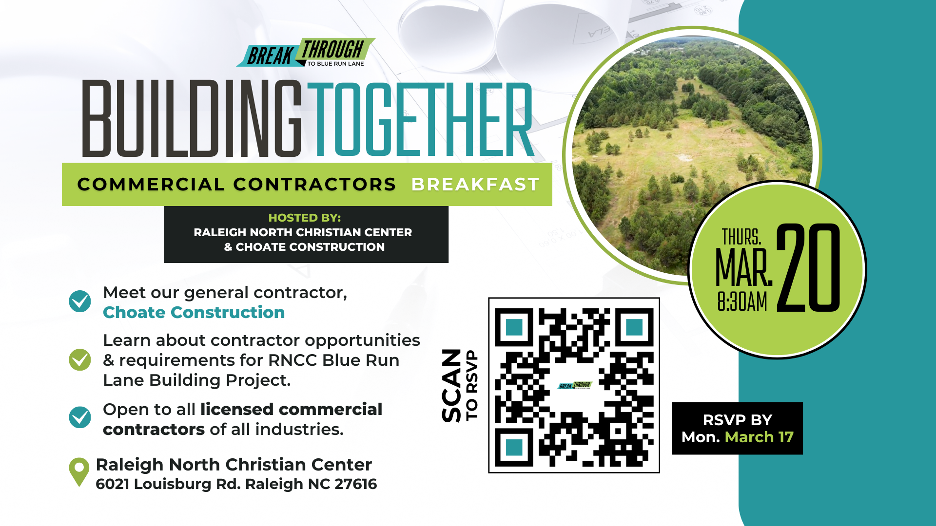 Join us on Thursday, March 20, at 8:30 AM! 🏗️. Meet our general contractor, Choate Construction, and learn about contractor opportunities & requirements for the RNCC Blue Run Lane Building Project. ☕🍽️ Breakfast will be served! This event is open to all licensed commercial contractors across industries. RSVP required by Monday, March 17!